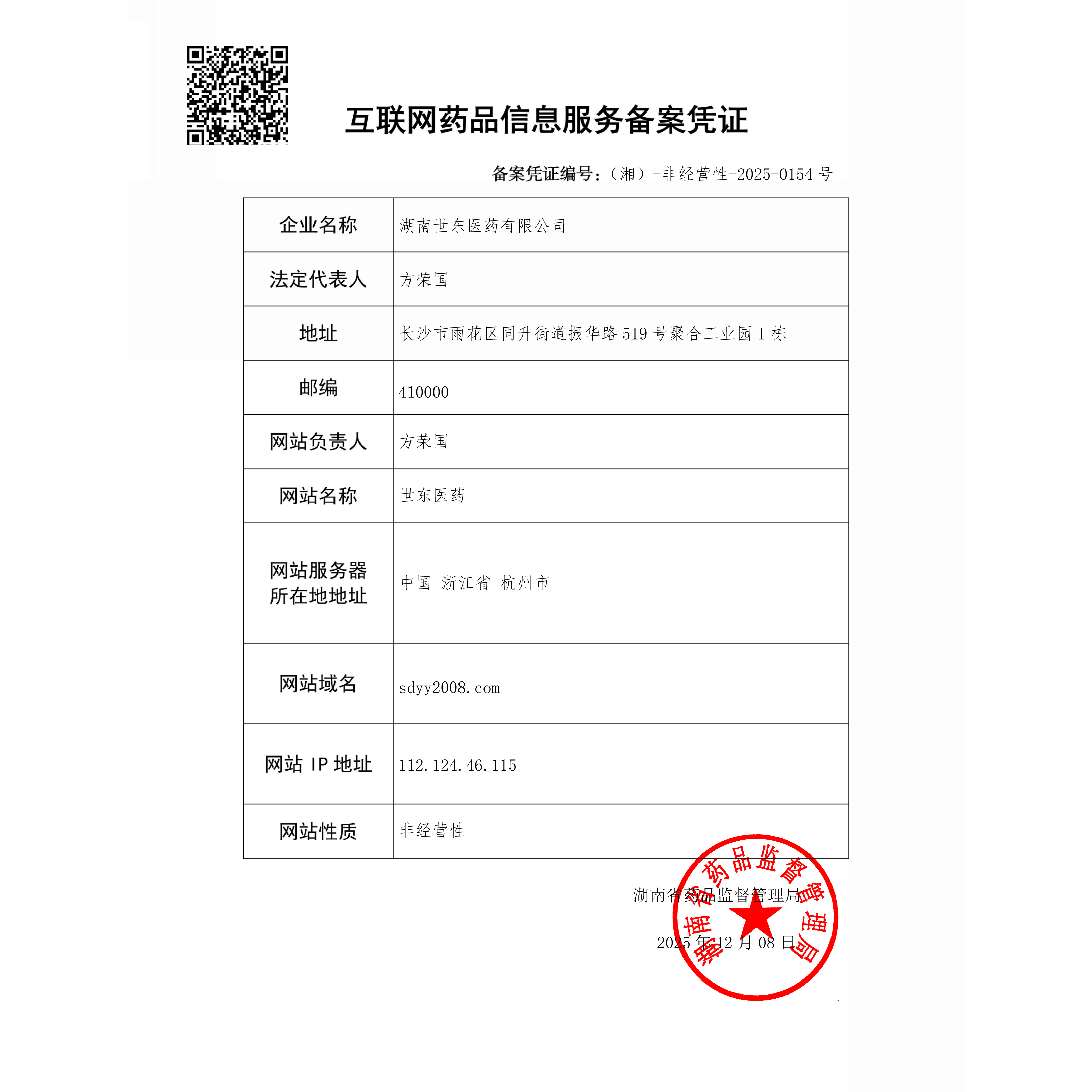 互联网药品信息服务备案凭证